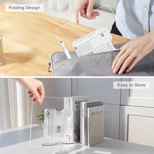 Durable and Foldable: Crafted from high-hardness acrylic, this bookshelf is designed to be long-lasting and resistant to damage. Its foldable design allows for easy storage and convenience. Upgraded Book Clips with Enhanced Capacity for Thick Books.