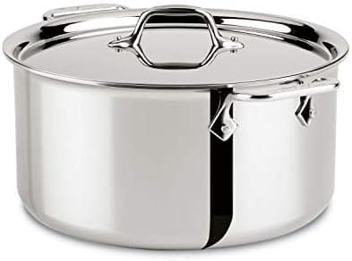 Stockpots are true do-it-alls when it comes to any liquid-related cooking. They have tall sides which reduce evaporation so thinner stocks and soups maintain their light consistency. With a wide, flat base, you can even Saute your soup ingredients right in the pot without having to use an additional pan. As part of our D3 Collection, this Stockpot features a bonded tri-ply construction made with a responsive aluminum core pressed together with 2 layers of durable, stainless steel all the way around the surface, for fast and even heat. At 8 quarts, it is the perfect size for making food for a party or to meal prep for the week. To keep your All-Clad looking brand new, we recommend washing your cookware with a soap and sponge instead of the dishwasher. Like all our bonded cookware, it’s handmade in the USA at our Canonsburg, PA factory with ultra-durable materials that’ll last a lifetime and never go out of style. Handles & handle loops are made in China.