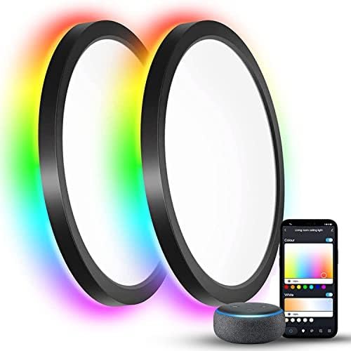 Aphyni Smart LED Ceiling Light 2 Pack, Compatible with Alexa Google Home, 12 Inch 24W 2400LM 3000-6500K Dimmable Thin RGB Color Changing Ceiling Light WiFi for Bedroom, Living Room, Kids Room, Black