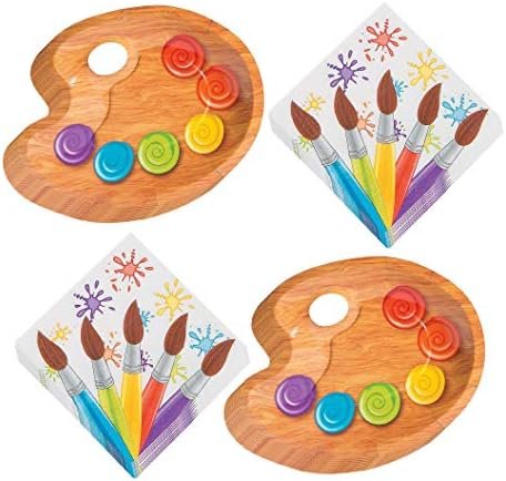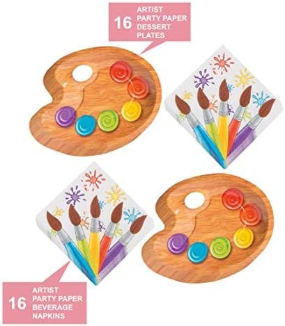 Art Party Supplies – Paint Party Paint Palette Shaped Paper Dessert Plates and Artist Brush Beverage Napkins (Serves 16)