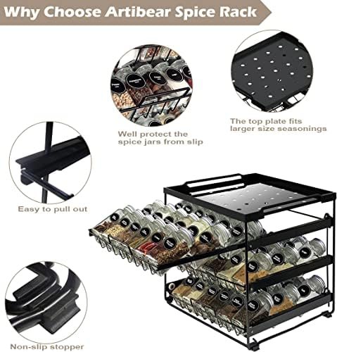 Artibear Upgraded Pull Out Spice Rack Organizer for Cabinet Storage Upto 54 Jars, 3-Tier Seasoning Shelf Holder for Kitchen Pantry Countertop, Matte Black (Bottles Not Included)