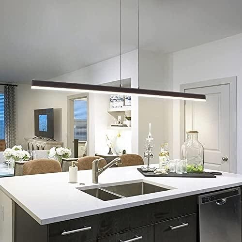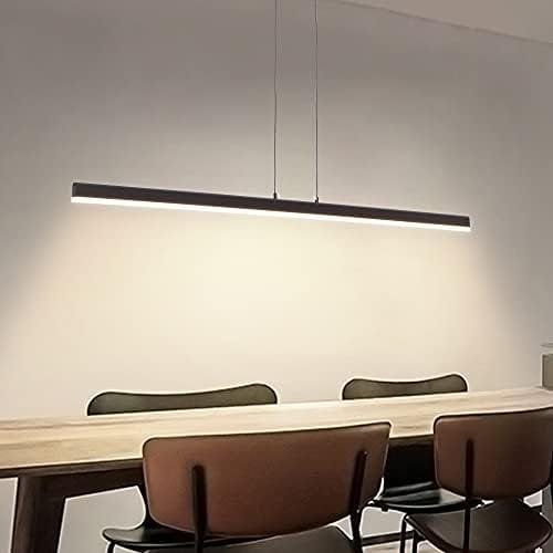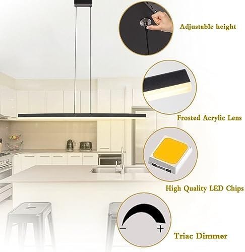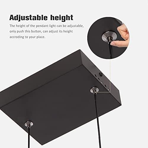 [ADJUSTABLE HEIGHT] Has 2 adjustable cords of this linear dinning light, just press the black button which connect line and canopy, when press and pull the line that can adjustable height. The maximum height of this black island hanging light fixture can be adjusted to 47 in. You can adjust this chandelier according to the place.