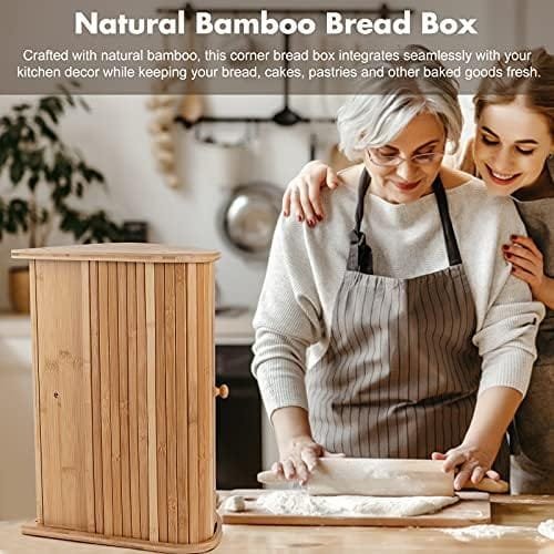 Crafted with natural bamboo, this corner bread box integrates seamlessly with your kitchen decor while keeping your bread, cakes, pastries and other baked goods fresh. Bamboo is sustainable and durable, making it an excellent choice for a countertop bread storage.