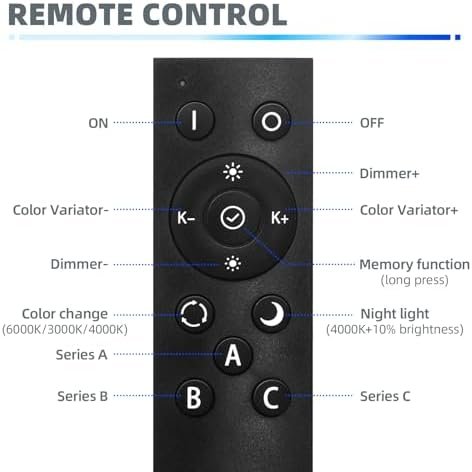 Convenient Remote Control: Easily control the lights using the remote control or wall switch. Adjust the color temperature from 3000K-6000K, and even activate the night mode. The remote control also allows for 0-100% brightness adjustment. lf a color temperature is held for more than 10 seconds, the light’s memory function triggers. lt will then resume this color temperature upon next use