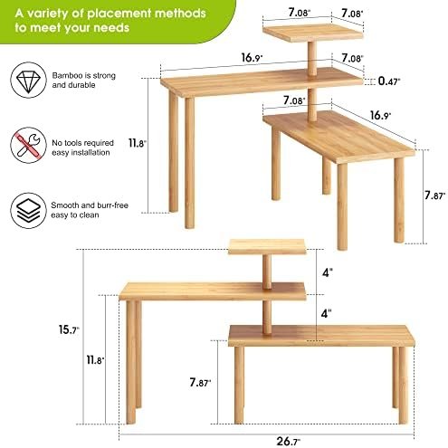 🌟【High-Quality Craftsmanship】Kitchen corner shelf is made of environmentally friendly bamboo and wood material, using high-temperature hot pressing and multiple polishing processes, it is smooth and easy to clean, and the non-slip foot pads will greatly protect your countertops. Bring an ultra-smooth, durable corner shelf to your home life.