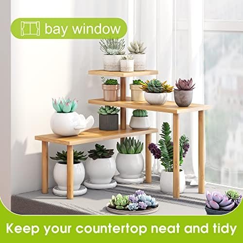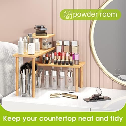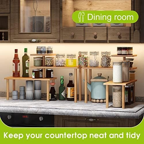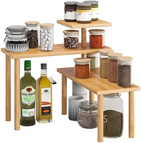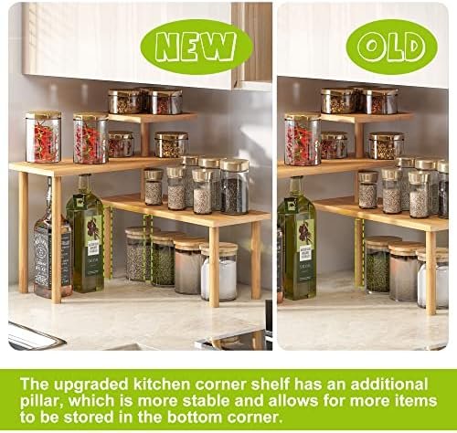 BMOSU Kitchen Corner Shelf Countertop Organizer Adjustable Spice Rack Corner Display Rack Shelf Cabinet Corner Rack 3 Tier Storage Organization Bamboo for Kitchen Bathroom Office Counter Shelves