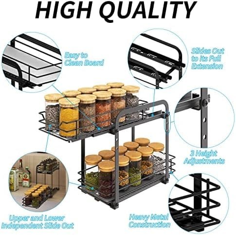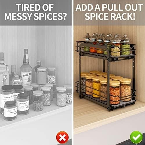 BOIVSHI Spice Rack Organizer for Cabinet, 2-Tier Pull Out Spice Organizer for Cabinet Height Adjustable Heavy Duty Metal Basket for Inside Cabinets & Pantry Closet