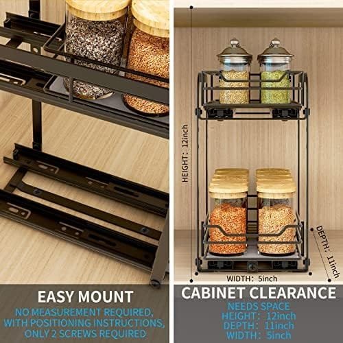 Fits for Standard Cabinets: Approximate measures at 5 ”W x 11”D x 12”H. The 2 tier design saves valuable cabinet space. Please confirm your cabinet size before you order.
