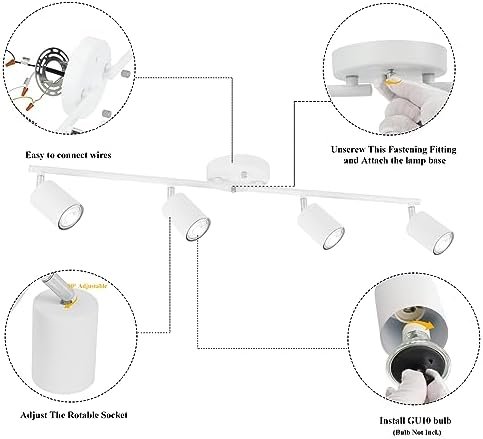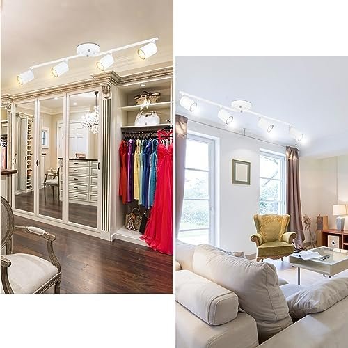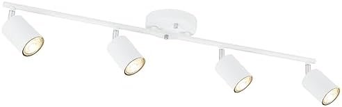 Boostarea LED 4 Light Track Lighting Kit, White 4 Way Ceiling Spot Lighting, Flexibly Rotatable Light Head for Kitchen, Living Room, Bedroom, GU10 Bulb Not Included