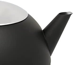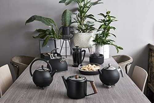 The Duet® Bella Round is a true classic in the Bredemeijer® collection! This famous spherical teapot already adorns countless kitchen and dining tables. The matte black colour combined with chrome fittings gives this teapot its stylish appearance. Bella Ronde is made of high-quality metal and has a double insulating wall. This ensures the temperature and flavour of the tea are retained for up to as long as an hour (if the teapot is kept at least 90% full). The specially designed spout makes for smooth pouring with no dribble. Thanks to high-quality stainless steel, the teapot will last for years. The insulating material used for the handle and knob mean those parts never get more than lukewarm. The pot can hold 1.2 litres which is the same as 6 cups of tea.
