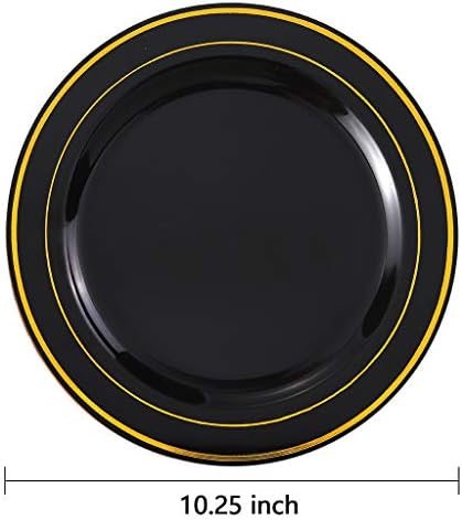 WELL-PACKED: Have 100pieces 10.25inch gold rim plastic plates.We use strong durable packaging to guarantee that your plastic disposable plates arrive in the best condition possible.