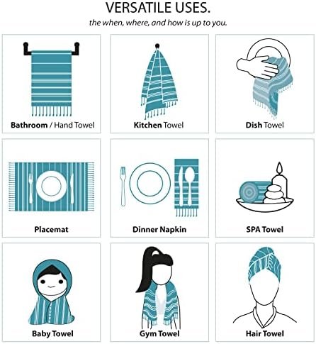 VERSATILE: Hand, bath, kitchen, or dishtowels for home, bar, restaurant, spa, salon, hotel, or bathroom. Dinner napkin, placemat, gym or dry your hair. Large enough for after baby or infant bath. Wash dishes, wipe countertops, clean appliances, pick up spills or messes with ease. At home, industrial, or professional use
