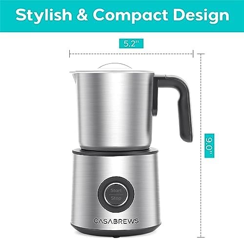 Practical Coffee Lover’s Gift: This stainless steel milk frother is not only perfect for home or office use, but also a great wedding gift, anniversary gift, Christmas gift, gift for mom, gift for dad, gift for men, gift for women and gift for wife. With its fashionable appearance and sleek design, the milk steamer and frother makes an ideal gift for coffee enthusiasts or anyone who enjoys creating cafe-style drinks at home.