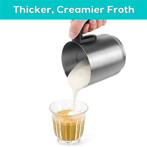 One-Button Control & Easy to Clean: This electric milk frother is designed with a one-touch button for a fast and effective frothing process in just two steps. The easy-to-pour spout design makes it convenient to create artistic designs with the frothed milk. The detachable milk jug is dishwasher safe, and the 360° detachable base is perfect for deep cleaning.