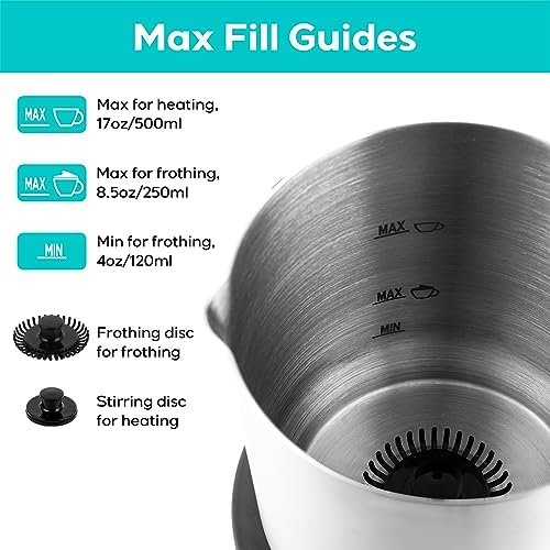 Durable Design & Long-Lasting Performance: The milk frother and steamer is made from high-quality stainless steel that resists rust and corrosion. It has received full certifications, ensuring its safety and reliability for extensive uses. The 17oz (500mL) jug capacity is suitable for 1-2 people, making it ideal for personal use.