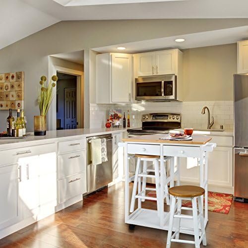 This very attractive Drop-Leaf Breakfast Cart is made of solid wood. Stylish and functional, it’s sure to bring a smile to your morning. Featuring a space-saving design with a drop-leaf table top, two drawers, and two towel bars for when you need them. Lockable wheels provide stability and mobility on any occasion.