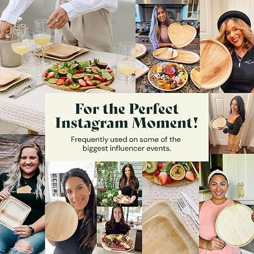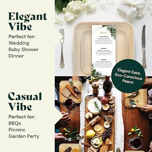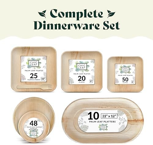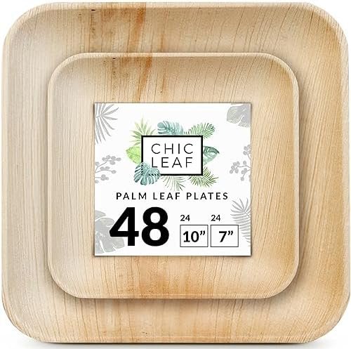 Chic Leaf Palm Leaf Plates Disposable Bamboo Plates Like 10 Inch & 7 Inch Square Party Pack (48 Pc) Compostable and Biodegradable – Better than Plastic and Paper Plates