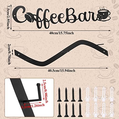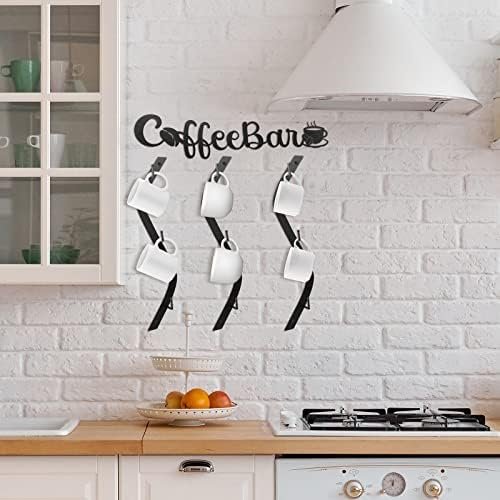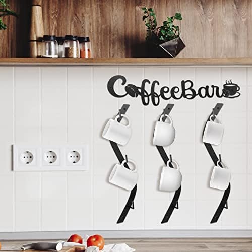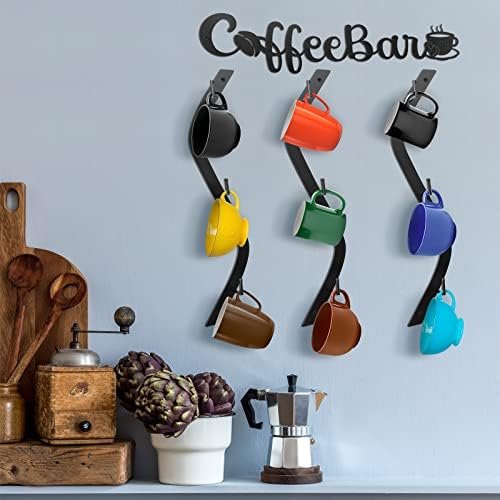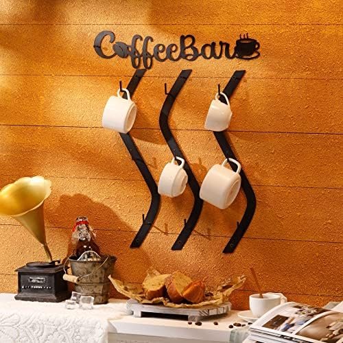 Coffee Mug Wall Rack Mounted with Coffee Bar Sign Curve Coffee Mug Holder Hanging Metal Mug Racks for Wall Black Coffee Cup Holder Coffee Cup Rack Hanger with 9 Hooks Kitchen Coffee Bar Decor