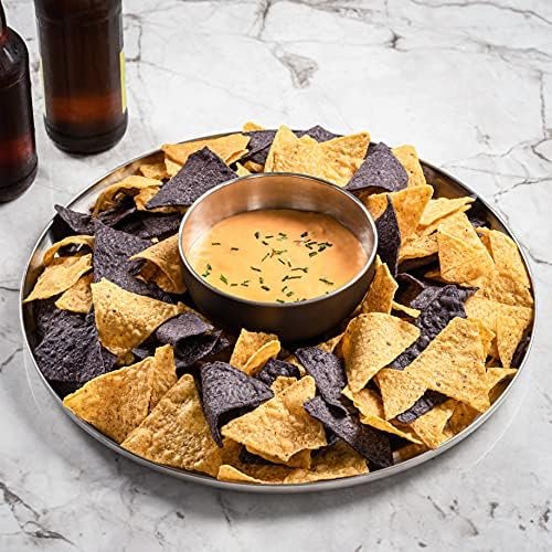 Colleta Home Chip and Dip Serving Set – Stainless Steel Appetizer Tray w/Shrimp Cocktail Dish & 13 Inch Round Cake Stand – Stylish & Versatile Kitchen Accessory for Displaying Desserts