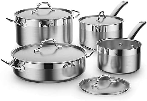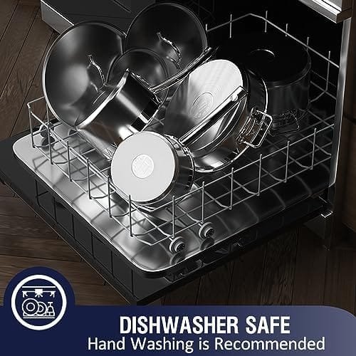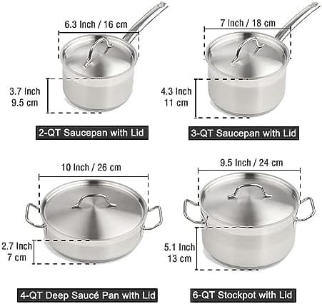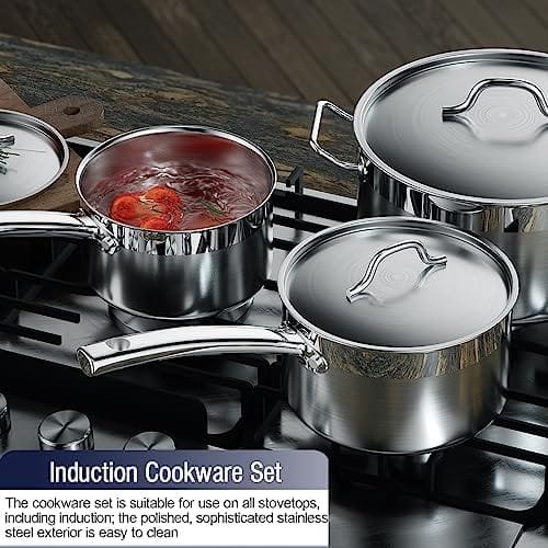 HIGH QUALITY – Pots and pans set is made of brushed 18/10 stainless steel both inside and outside, which is corrosion-resistant, high-temperature resistant, has a long service life, and is not easily deformed.