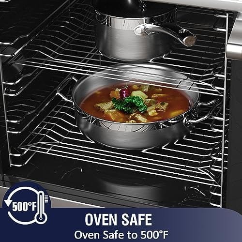 MULTI-STOVE COMPATIBLE – Induction compatible and works on gas, electric, glass, ceramic, halogen, and more. Oven safe up to 500℉. Dishwasher safe for easy cleaning.