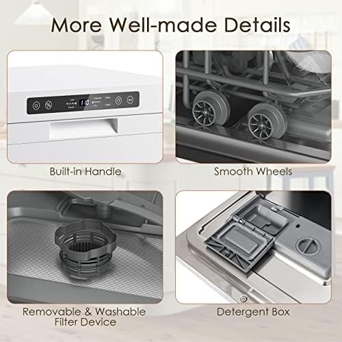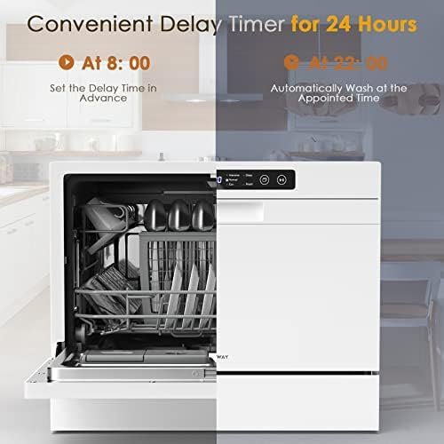 【24 Hours Timer & Quiet Operation】 The convenient delay timer greatly saves your time. You can set the delay time in advance and the countertop dishwasher will automatically wash your tableware at the appointed time. Besides, with low noise of 52 dB, the operation of the dish washer is quite silent without disturbing your sleeping or working.