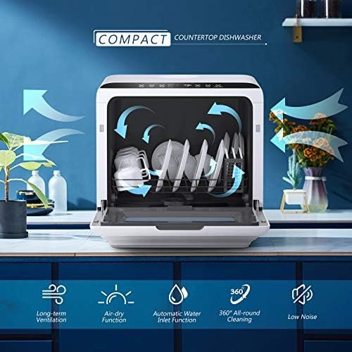 💦COMPACT & PORTABLE DESIGN——This countertop dishwasher measures 18″ x 17.5″ x 18″, which is compact to take little space and easy to carry anywhere. The machine can fit a variety of dishes (up to 12-inches in diameter at an angle). It is perfect for small-sized house, dorm, apartment, RV and more.