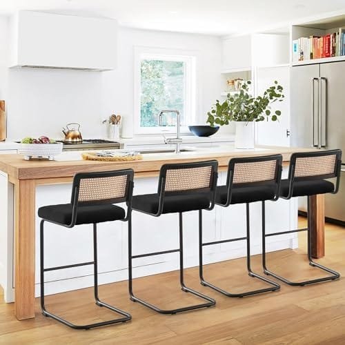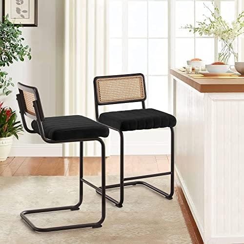 ✅【Mid-Century Modern Design】: Choose between 30-inch seat height for tall bar stools suitable for 40-43 inch kitchen islands OR 26-inch seat height for counter stools perfect for 35-37 inch kitchen counters. Seat measures 18.11″L x 15.75″W, with a hand-woven rattan backrest size of 17.72”L x 8.86”W, Our mid-century modern bar stools boast a unique combination of rattan and stylish velvet, providing a retro-modern aesthetic that complements any traditional or contemporary kitchen.
