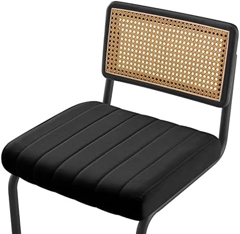 ✅【Sturdy S-shape Iron frame】: This cane bar stool offers excellent stability and support with its cantilevered design that allows the seat to flex slightly for a delicate recline. The maximum weight capacity is 260 pounds. Choose from two leg frame options – classic black plating or chrome plating – to add a stylish and stunning touch to your home decor.