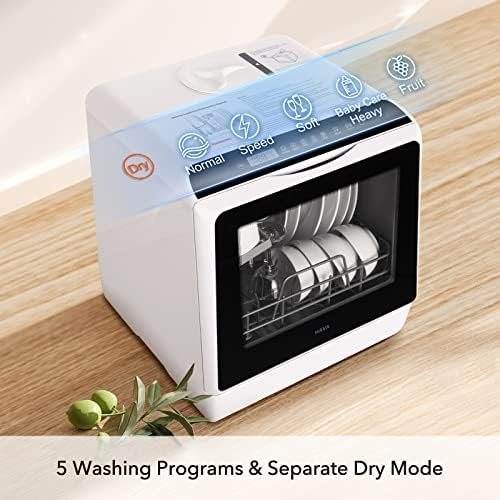 5 WASH CYCLE OPTIONS & DRY MODE: Supports Normal, Speed, ECO, Heavy/Baby Care and Fruit modes for your various dishwashing needs; after each wash cycle finishes, an extra Dry mode provides an extra 60 minutes of drying, and offers 72-hour ventilated storage to prevent odors and keep your dishes clean 【NOTE】Do not move the dishwasher while it is operating or paused. Only move it when the water tank is completely drained