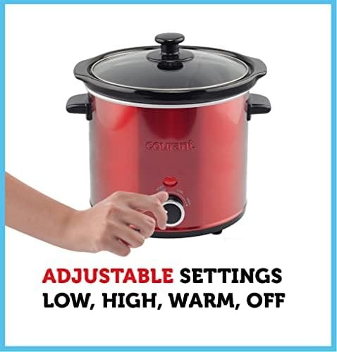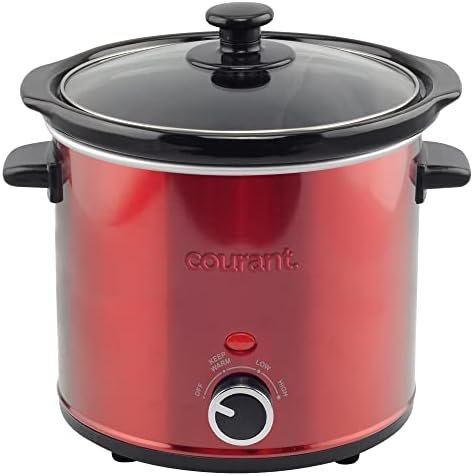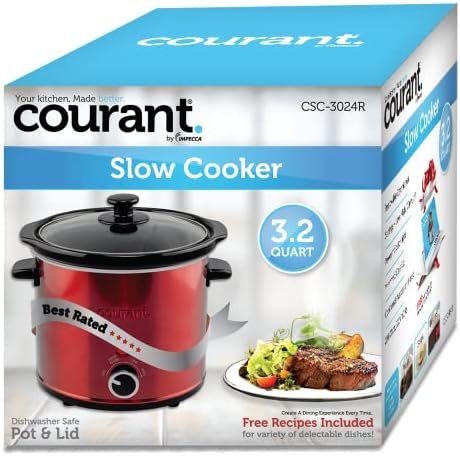 Convenience and style come together with the Courant slow cooker series. Whip up savory dishes anytime , Using basic ingredients available on hand . Our great series of slow cookers is designed to turn “simple input into delicious output”! No more Hassling with time limitations! With Courant you get to create dinner at YOUR convenience. When preps done, just lower the heat setting, head off to accomplish your scheduled tasks, and allow the flavors to seep in while stewing slowly. With a Red stainless steel design and cool touch handles, this slow cooker is also dishwasher safe for added convenience! Amaze the family with impressive dinners using Courant slow cookers. We call it …savory heaven!
