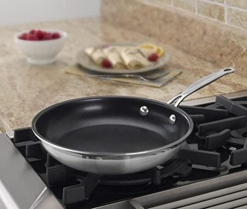 Inspired by the great French kitchens, Cuisinart began making professional cookware almost 30 years ago. Constructed of the finest materials available to perfectly perform all of the classic cooking techniques, Cuisinart cookware continues a long tradition of excellence. Cuisinart’s commitment to quality and innovation continues with the MultiClad Pro Stainless cookware, designed to meet the demands of gourmet chefs everywhere. Unique triple-ply construction joins a brushed stainless steel exterior, a pure aluminum core that provides even heat distribution, and a stainless steel interior, for optimal performance. MultiClad Pro Stainless lets you celebrate the fine art of cooking.