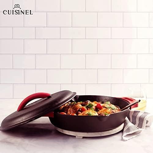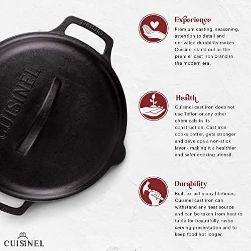SUPERIOR PRE-SEASONED CRAFTSMENSHIP – Crafted to last for generations, Cuisinel sources the highest quality materials in casting our cookware. Cuisinel cast iron is notoriously safer than teflon or other non-stick materials. Continuous easy-to-follow seasoning will result in a safe, healthy and virtually non-stick pan. After every use, cast iron should be hand washed, dried thoroughly on the stove at medium heat and seasoned with natural oils; Do not put in dishwasher and do not air dry.