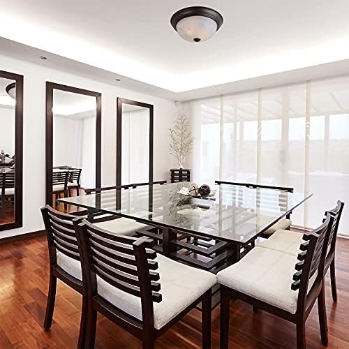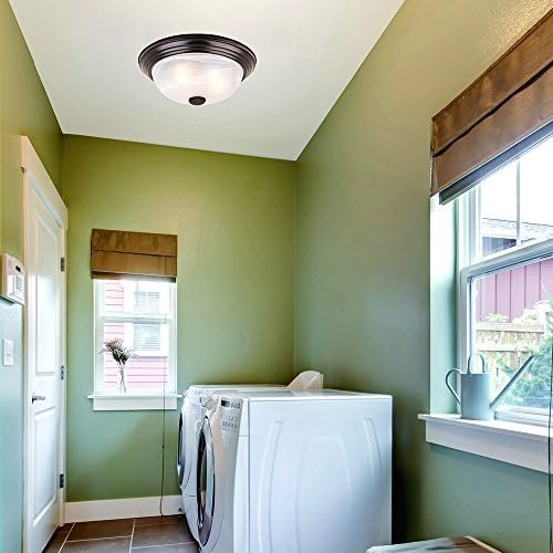 Protective Oil Rubbed Bronze finish Decorative alabaster glass shade Steel construction to look good for years to come Uses 2 medium based LED, CFL, incandescent light bulbs, 60W max each, not included Mounting hardware included for easy installation Perfect for hallways, entryways, bedrooms, utility areas Perfect size for smaller rooms Rated for damp areas
