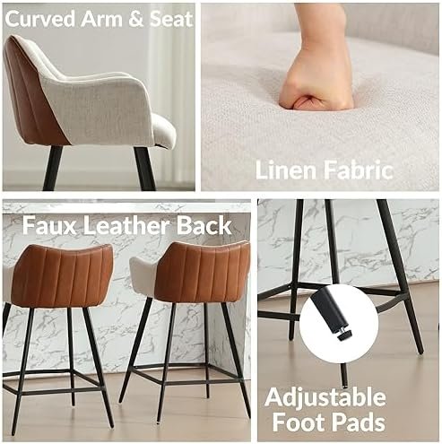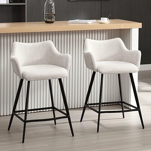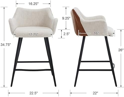 Be the first to review “DM Furniture 26″ Bar Stools for Kitchen Island Set of 2 Linen Counter Stools with Arms Mid Century Modern Counter Height Barstools w/Faux Leather Decor/Metal Legs for Home Pub/Breakfast Bar, Beige”