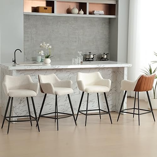These bar chairs have sleek functionality with a timeless design. The bar stool for kitchen island is upholstered in PU leather; linen fabric or (Teddy Fabric), an extremely strong, and long-lasting fabric.
