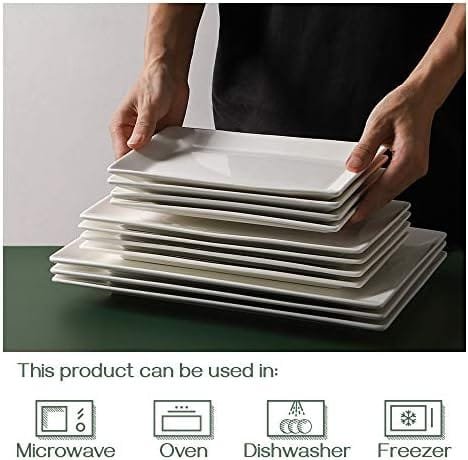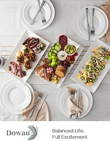 Practical & Elegant Design: Rectangular plates are evenly glazed by professional workmanship, these white plates set look gleaming-white, great to decorate any tableware, and perfect to present your thoughtfully crafted dishes. Ideal for parties, birthdays, weddings, or daily use.