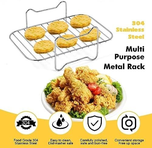 Great Comprehensive Pack – The set contains plenty of useful extras to help you increase the usefulness of your air-fryer.Safe & Healthy Materials – Made of food grade 304 stainless steel & silicone. Safe, non-toxic, and durable, preventing rust and high heat resistance.Easy To Use, Easy To Clean – Our accessories are made with everyday use and convenience in mind. These accessories are dishwasher safe, rust resistant, and a breeze to clean to make sure you can use them with peace of mind.