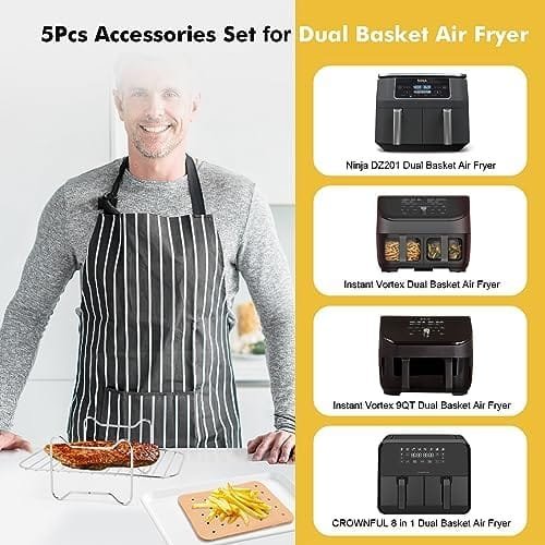 Suitable for most 8QT & larger [ Dual-Basket Air Fryers ], such as Ninja DZ201 DZ401 Air Fryer, Instant Vortex Plus XL Dual Basket Air Fryer, CROWNFUL 8 Quart Dual Basket Air Fryer, etc.Unsure about your double basket air fryer model? The maximum dimensions of the accessory is 7.87*5.51*3.15 inches. Please make sure the basket of your air fryer is larger than the size of the accessory. Note:The Special Design for Dual Basket Air Fryer, single-basket air fryer users please discretely to purchase.