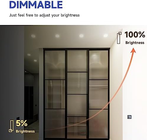 ✅Smooth Dimming: The LED Ceiling Downlights can smoothly dim from 100% to 5%, which allows you to customize your ambiance in every scene you are in. No Flickering and eye-protection. compatible with most dimmers on the market. Use it for kitchen, living room, bedroom, bathroom, workplace, common areas and other hard to reach spaces.