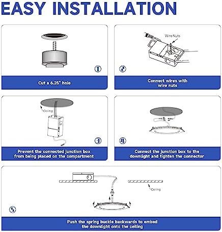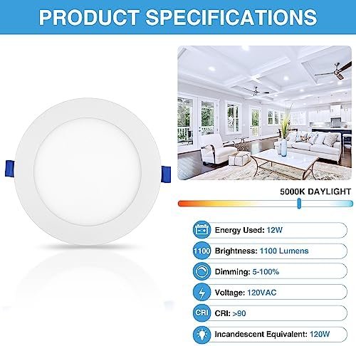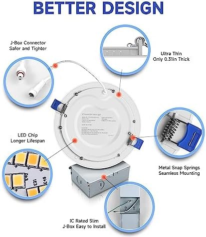 ✅Easy Install: The ultra-thin downlights feature a low profile for narrow ceilings. No can needed so it installs fast. Cut a hole in the ceiling to size, Connect the Jbox to the cable; Use spring clip to fix it on the ceiling. only a few minutes can be completed.