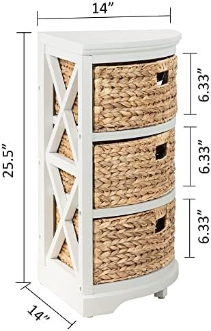 This piece includes an X-side design for additional support, top shelf holds up to 25 pounds, basket hold up to 15 pounds