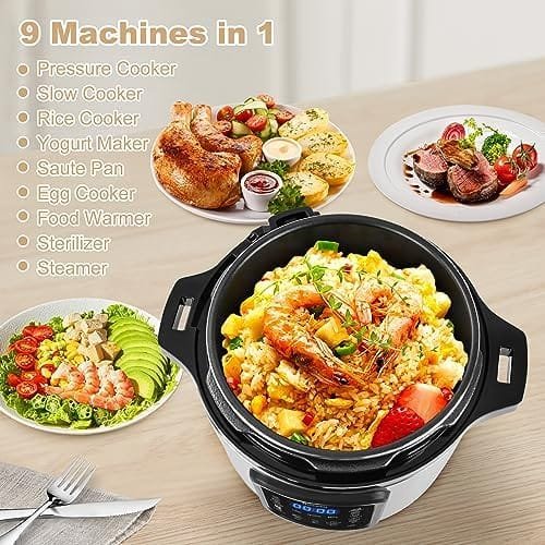 【70% Faster Cooking & 24H Pre-Settable】: The electric pressure cooker meals up to 70% faster than traditional cooking methods or use the Slow Cook function for stews and soups. 24 hours delay timer makes it possible to prepare your breakfast in advance at night and enjoy it in the morning. The LED display shows clearly the cooking progress.