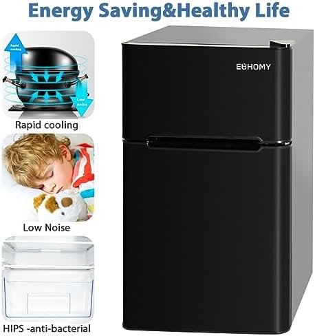 EVERYTHING WE DO IS TO SATISFY YOU – Euhomy is also very dedicated to save energy. Mini refrigerator have UL energy certificates and only need 0.98 kwh per day. In the long run, this is very good for your wallet. Euhomy provides a one-year warranty service. If you experience any issues, please ask us for help and we will help you solve them. Your satisfaction is our unremitting pursuit. Please note: You’d better put the small fridge with freezer upright for at least 24 hours before using it.