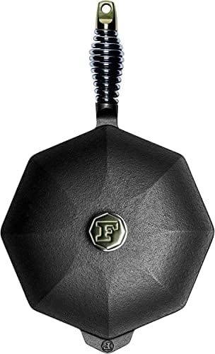 FUNCTIONAL ELEGANCE Thick base and walls for constant, even heating and heat retention; Patented octagonal “multi-pour” design for perfect pours and greater cooking control