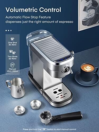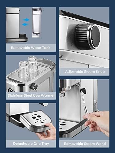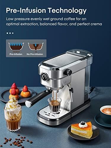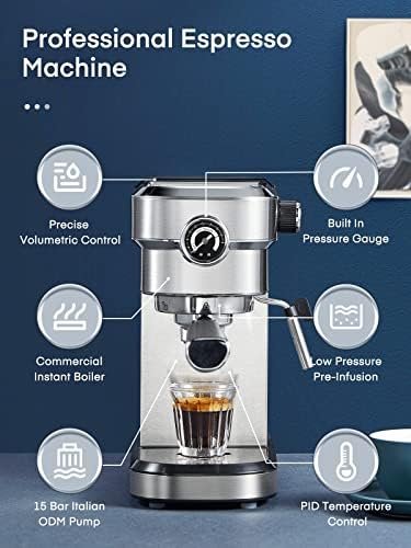 【Optimal Espresso Extraction】Start with low pressure pre-infusion process that soaks and expands the ground coffee, allowing water evenly through the coffee and delivering via 15 bar extraction pressure, creating a full-bodied coffee with rich flavors and golden crema.