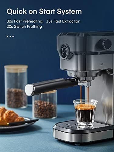 【Faster Heat Up Time】Innovative thermoblock heating system achieves the optimum extraction temperature in 30 seconds, and quickly switches between espresso mode and steam mode in 20 seconds. Make mellow espresso and microfoam milk without the wait.