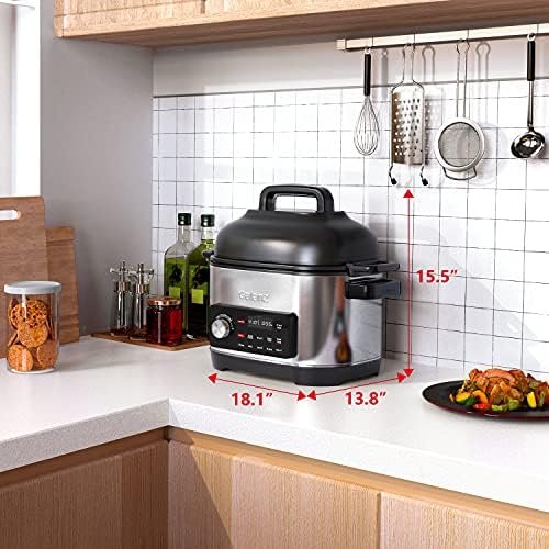 8 Preset Programs – The 8 quart multi cooker includes 8 smart preset touch programs in one panel for ultimate cooking versatility including air fry, grill, slow cook, roast, sous-vide, steam, rice and sauté . You can automatically adjust the cook cycle to ensure meals are never overcooked.