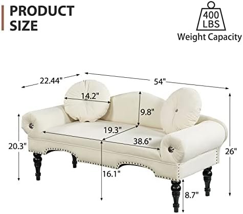 Perfect Piece: The small loveseat is multifunctional, not only as a Bedside Entryway Bench, Chaise longue indoor or an extra sleek seating, Enjoy the short break or relax time whenever you need.The loveseat size is 54″ W x 22.44″ D x 26″ H.