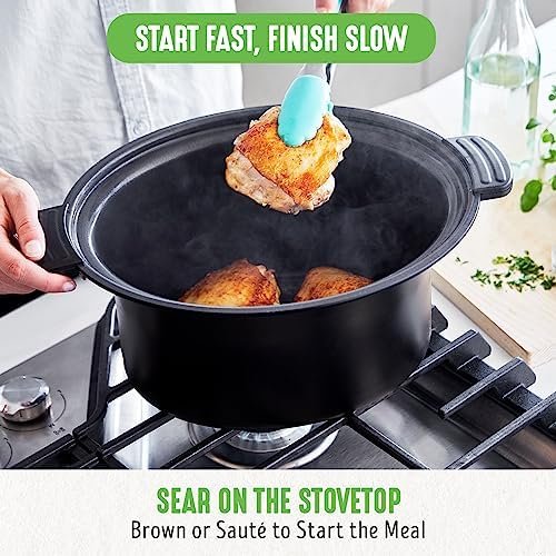 STOVETOP READY POT: The pot is lightweight and removable for stovetop and oven use, so you can start with a sear, finish slow, and get more flavor